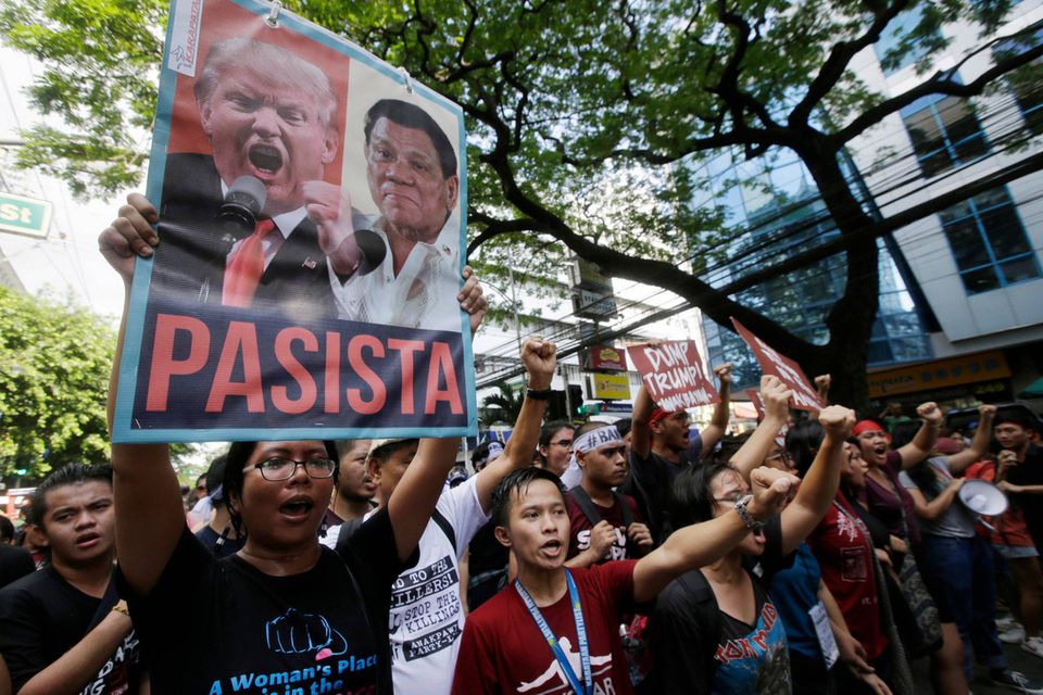 »Trump er lederen af den imperialistiske regering i USA. Vi ved, at han er her for at presse på for en urimelig aftale mellem Filippinerne og USA,« lød det bl.a. fra den 18-årige Alexis Danday ifølge Reuters.