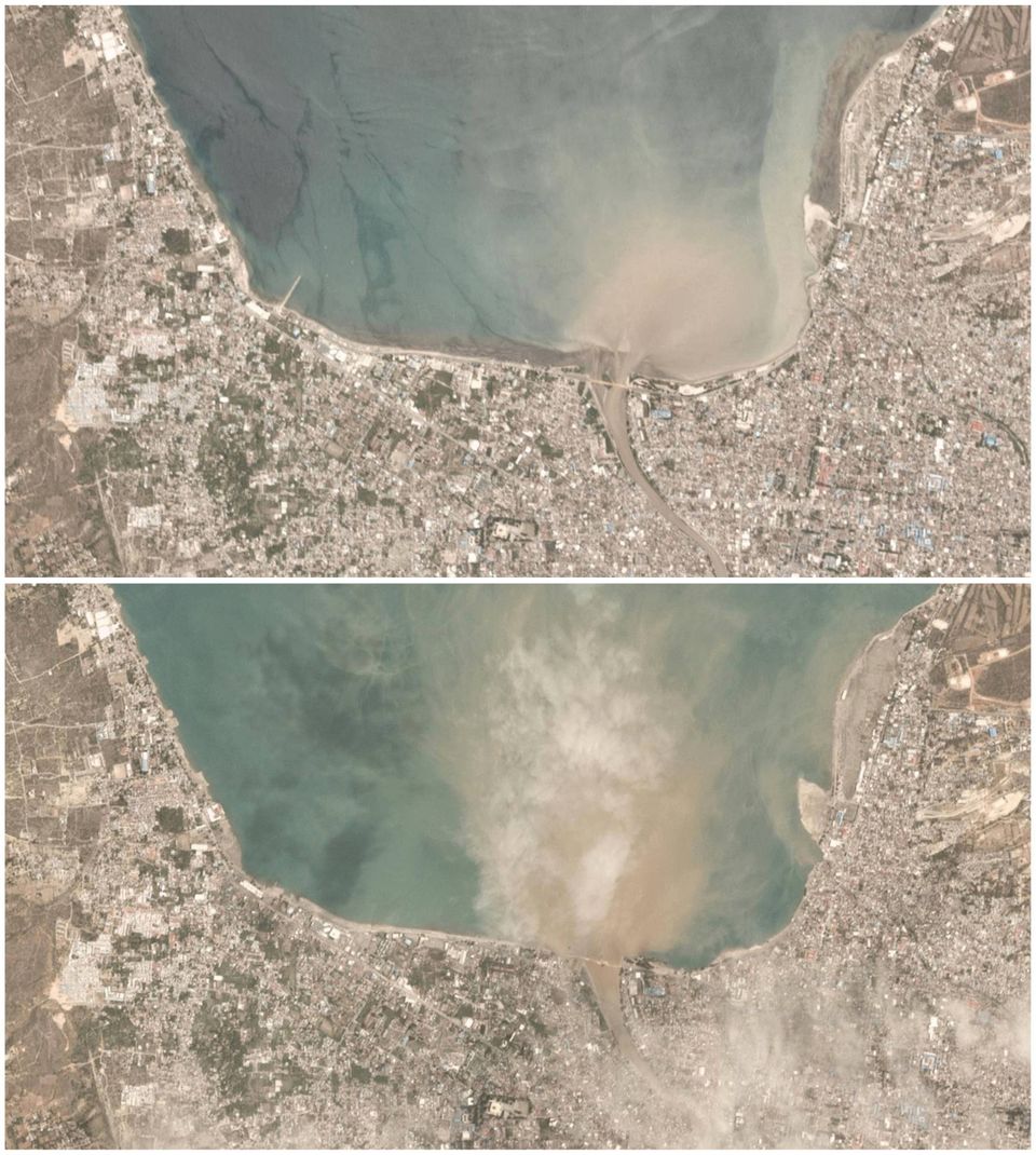 Satellitbilleder viser, hvordan dele af byen Palu i Indonesien er blevet ødelagt af voldsomme naturkræfter.