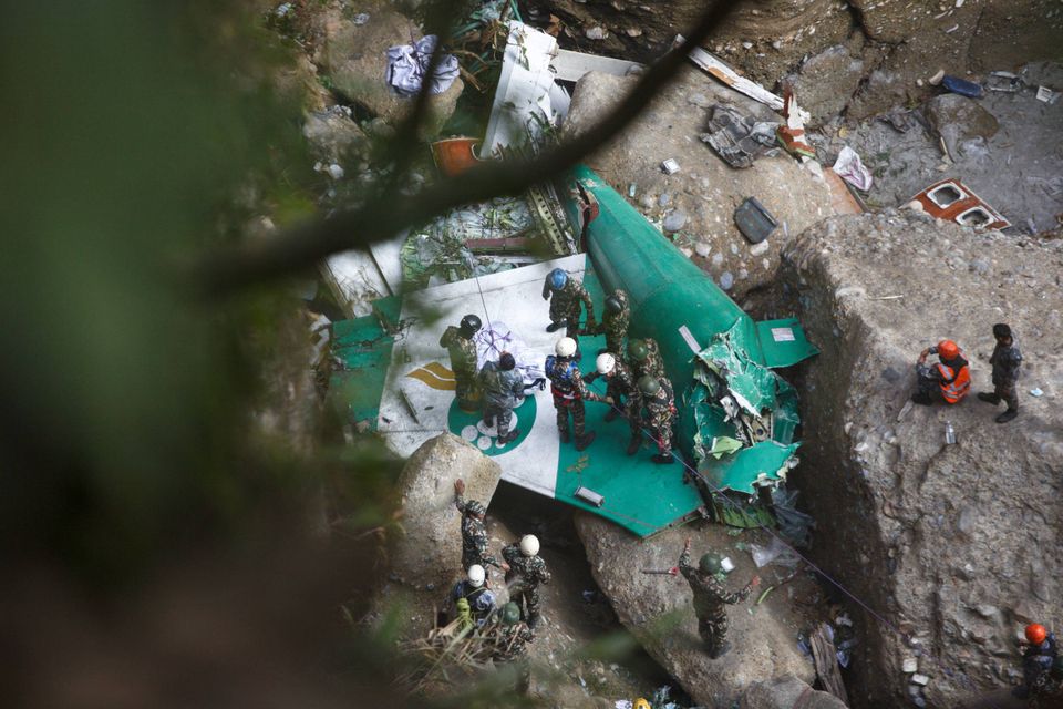 Flyet ATR 72 fra Yeti Airlines styrtede ned i en dyb kløft, hvor det blev knust og brød i brand.