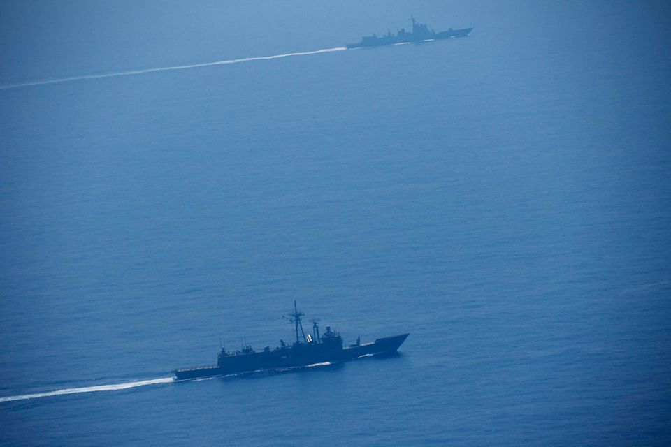 Flere videoer og billeder viser krigsskibe, som sejler rundt og kampfly sendt på vingerne for at simulere kamp.