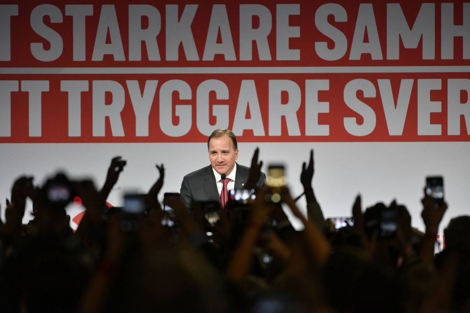 Den rødgrønne blok bestående af Socialdemokraterna, Vänsterpartiet og Miljöpartiet har samlet set 40,6 procent af stemmerne. Det svarer til 144 mandater.