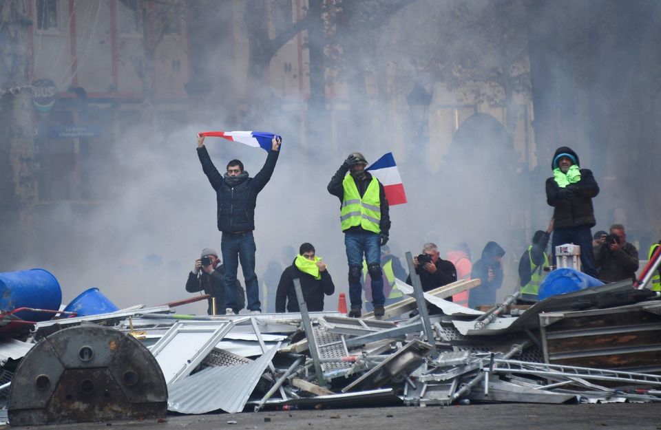 Lørdag aften meddelte landets indenrigsminister, Christophe Castaner, at det var højreekstremister, som gik til angreb og fik demonstrationen i Paris til at udvikle sig voldsomt, bl.a. ved at samle brosten op og kaste dem mod politi og journalister samt bygge barrikader på Champs Élysées.