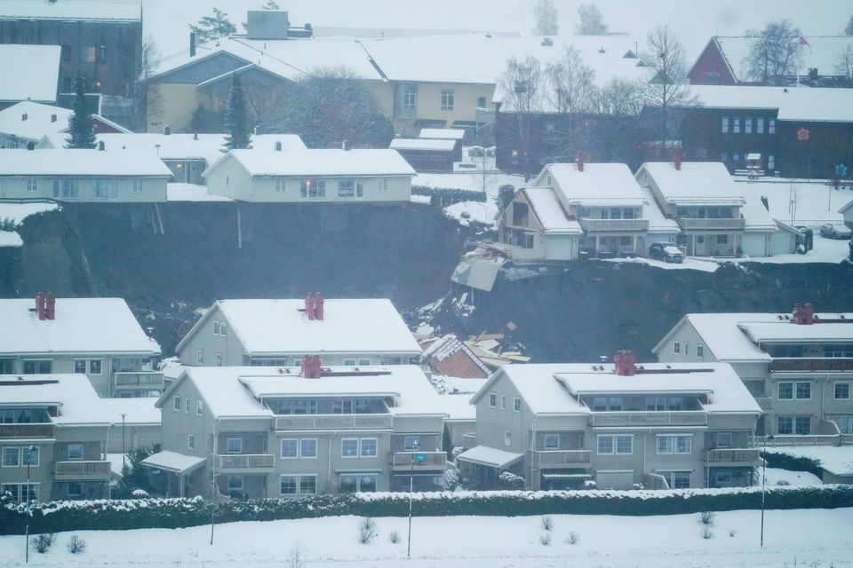 Sådan er meldingen fra det norske politi, efter et jordskred i nat rev flere huse med sig i byen Ask nord for hovedstaden Oslo.
