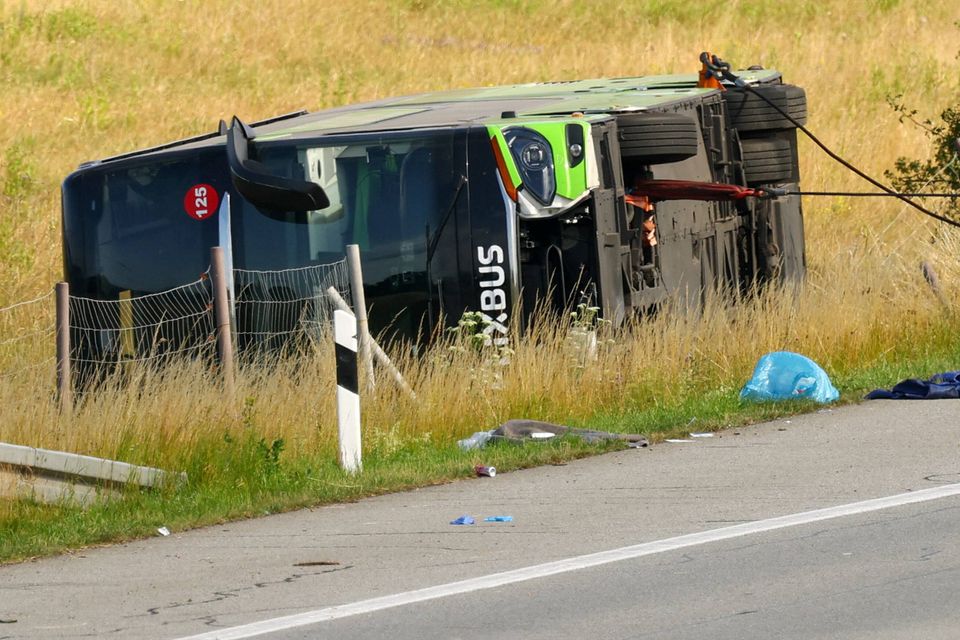Ulykken fandt sted på motorvej A19 ved frakørslen Röbel mod Berlin, og bussen væltede om på siden. Det skete omkring kl. 02.40 natten til fredag, skriver politiet.