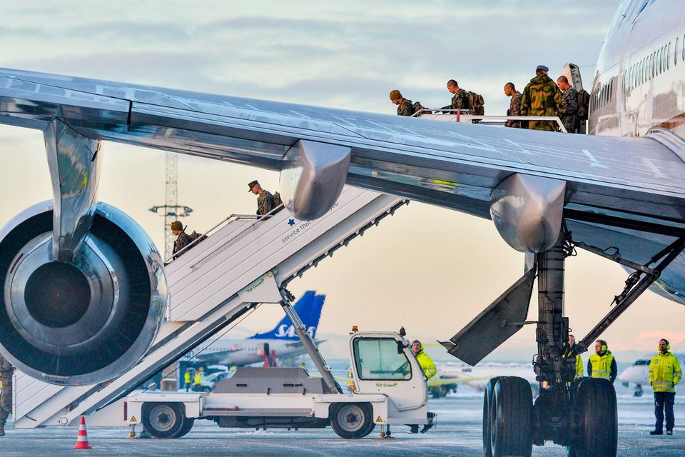 Sne, kulde og frostgrader. Det var en kold velkomst, som de godt 300 soldater fik, da de ankom til norske Værnes i nærheden af Trondheim mandag.