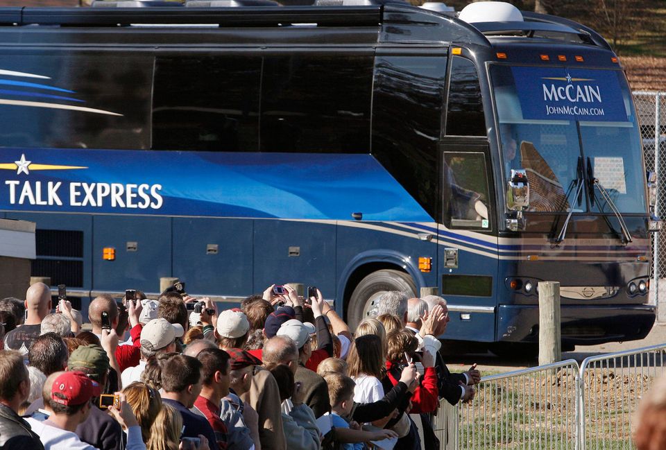 John McCains bus "Straight-Talk Express" får stor mediebevågenhed. Foto: Stephan Savoia/AP