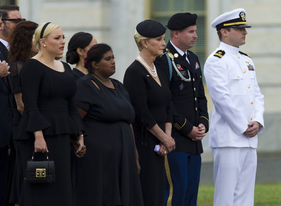 John McCains begravelse. Foto: Saul LoebJohn McCains begravelse. Foto: Associated PressJohn McCains kone, Cindy McCain og vicepræsident Mike Pence. Foto: Andrew HarnikJohn McCains begravelse. Foto: J. Scott ApplewhiteJohn McCains kone Cindy McCain foran hans kiste. Foto: J. Scott ApplewhiteAmerikanere, der viste deres støtte til McCain, stod ude foran ceremonien. Foto: Ray WhitehouseJohn McCains begravelse. Foto: Andrew HarnikJohn McCains begravelse. Foto: Win McnameeJohn McCains datter Meghan McCain (til venstre) og andre medlemmer af McCain-familien. Foto: Jose Luis MaganaBill Clinton, Hillary Clinton, Dick Cheney, Lynne Cheney og Al Gore var alle med til ceremonien. Foto: Saul LoebTidligere udenrigsminister Madeleine Albright, da hun ankom til begravelsen. Foto: Susan WalshBarack Obama, da han holdt sin tale. Foto: Pablo Martinez MonsivaisGeorge Bush holdt også en tale. Foto: Pablo Martinez MonsivaisJohn McCains begravelse. Foto: Pablo Martinez MonsivaisJohn McCains datter, Meghan McCain, holdt en tale til sin far. USA var allerede "great", sagde hun i en skjult kritik af den nuværende præsident, Donadl Trump. Foto: Pablo Martinez MonsivaisJohn McCains kone og datter. Foto: Drew AngererJohn McCains datter i tårer. Foto: Chris WattieJohn McCains begravelse. Foto: Pablo Martinez MonsivaisJohn McCains kone, Cindy McCain, i et sidste farvel. Foto: Andrew Harnik