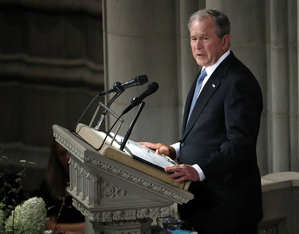 Både Barack Obama og George Bush talte ved begravelsen.