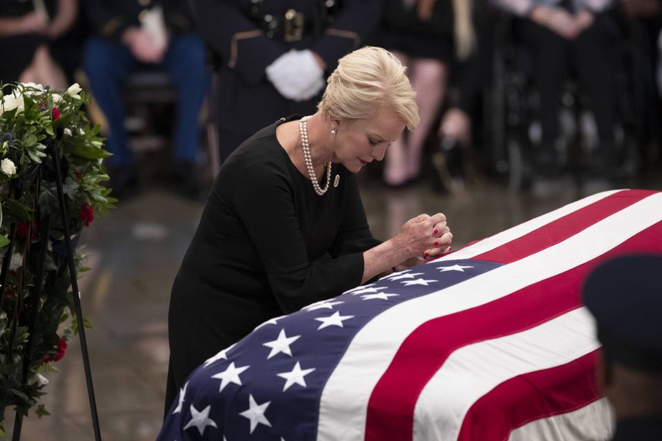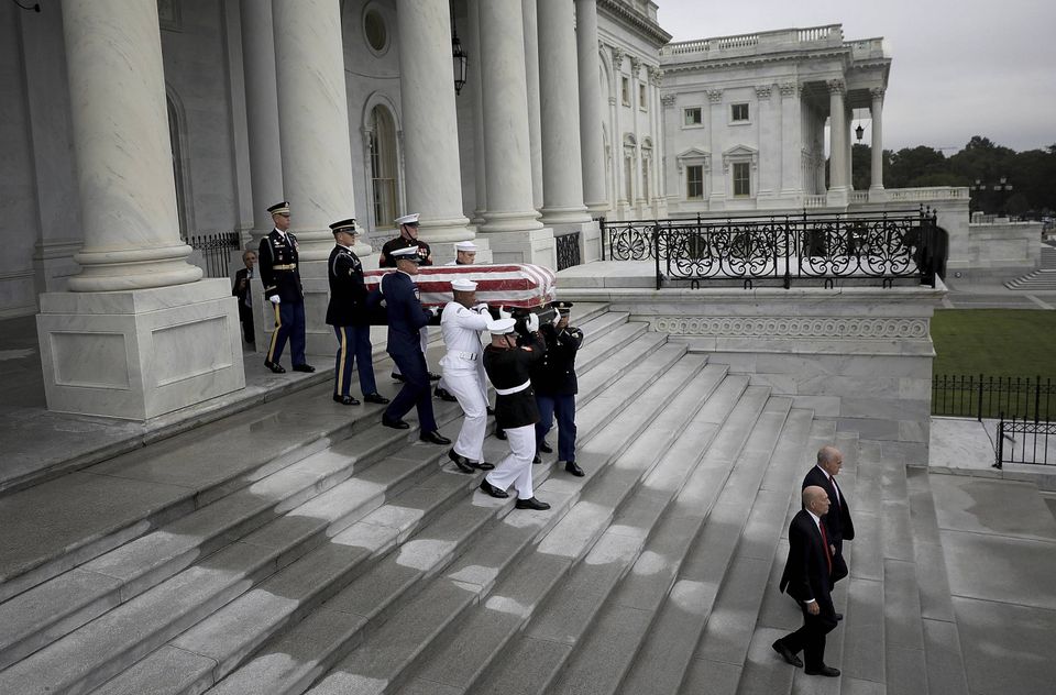 »Modig« og »ærlig«: Se billederne fra da tidligere præsidenter sagde farvel til McCain