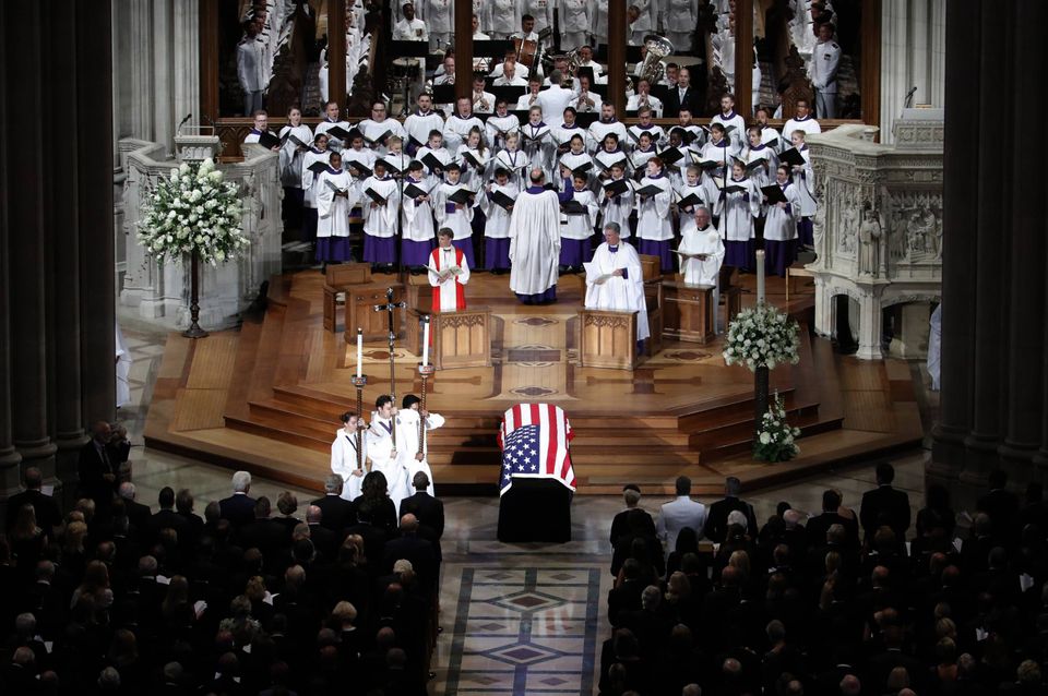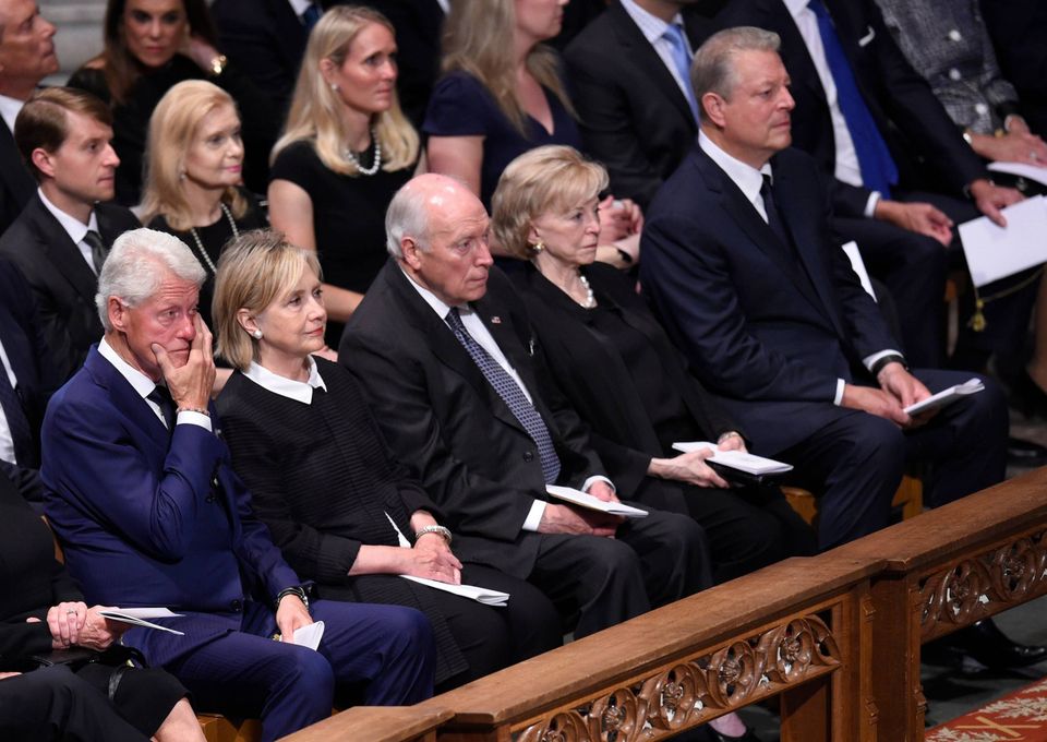 Hillary Clinton, George Bush, Barack Obama og mange andre prominente amerikanere var mødt op til senator John McCains begravelse lørdag i kirkerummet i National Cathedral i Washington.