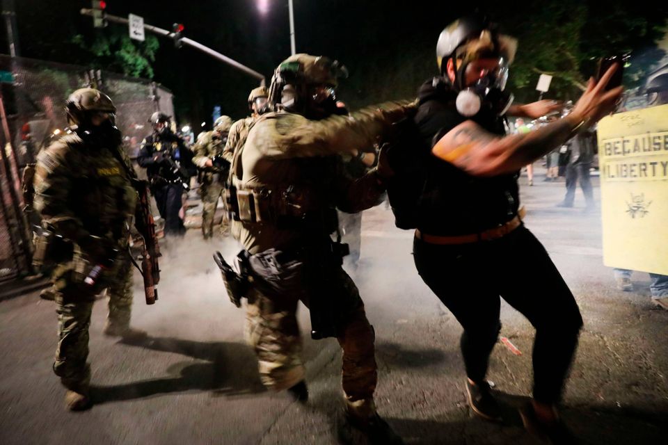 Samme dag skrev Donald Trump på Twitter, at føderale ejendomme i Portland ”ikke ville holde en dag” uden tilstedeværelsen af de føderale styrker.