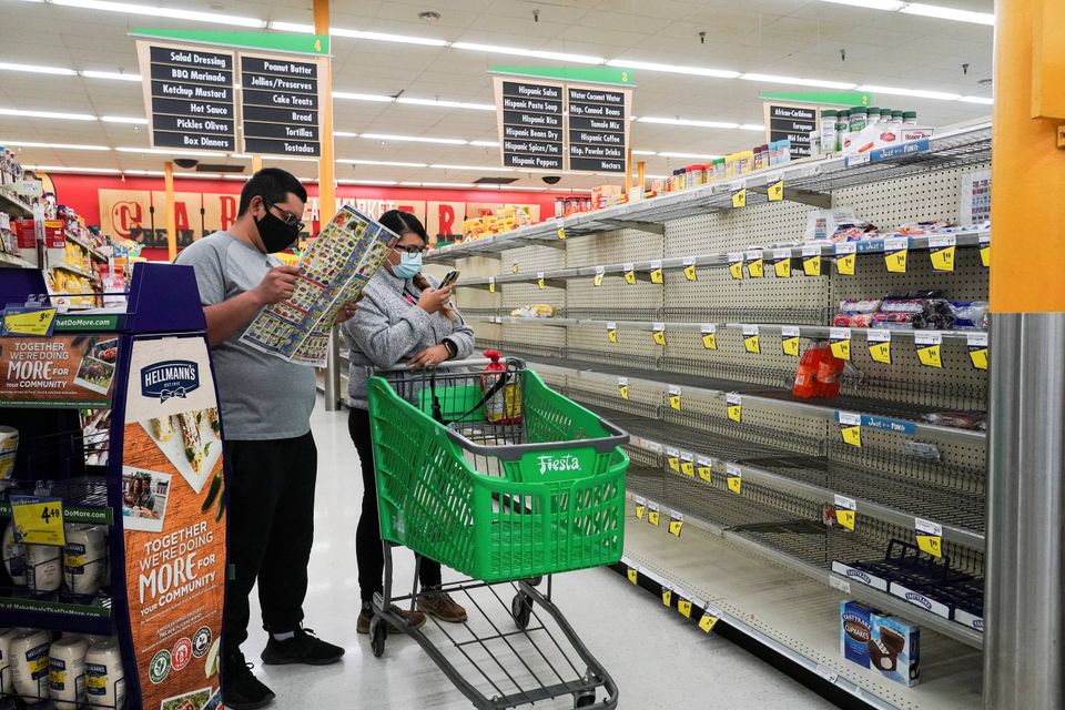 Samtidig er hylderne i supermarkederne fuldkommen lænset for fødevarer, fordi folk køber massivt ind af frygt for at komme til at mangle noget, mens der kæmpes for at vende tilbage til normalen.