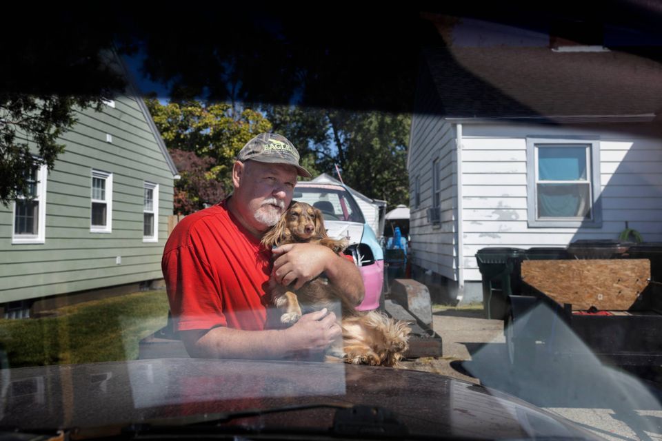 Han står uden for sit slidte hus på indfaldsvejen til Middletown i Ohio. Det er formiddag, og som altid er han trukket i arbejdstøjet for at reparere på en af sine mange biler, der står hulter til bulter rundtom i hans have.