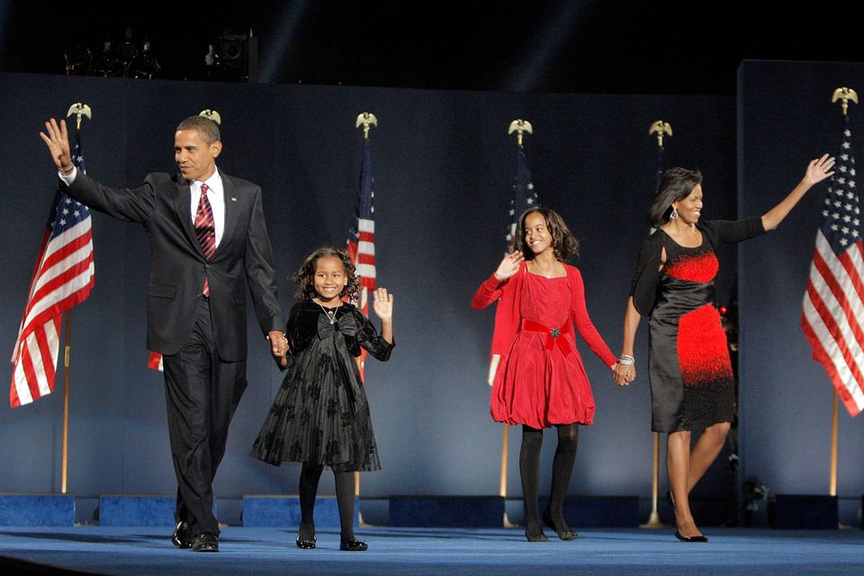 I 2009 rykkede familien ind i Det Hvide Hus i Washington D.C, efter at Barack Obama, som repræsenterede Demokraterne, havde vundet præsidentvalget.