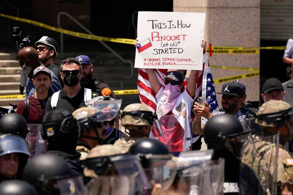 Anmodningen kommer, efter at landets præsident, Donald Trump, har beordret soldater fra blandt andet Nationalgarden til byen, som har været præget af store protester.