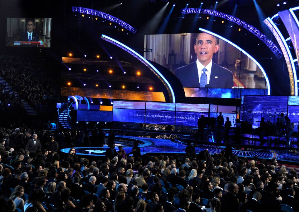 Når den amerikanske præsident taler, så lytter man. Også ved Latin Grammy Awards, der for 15. gang hyldede latinamerikansk musik. Prisuddelingen foregik i Las Vegas natten til fredag dansk tid.