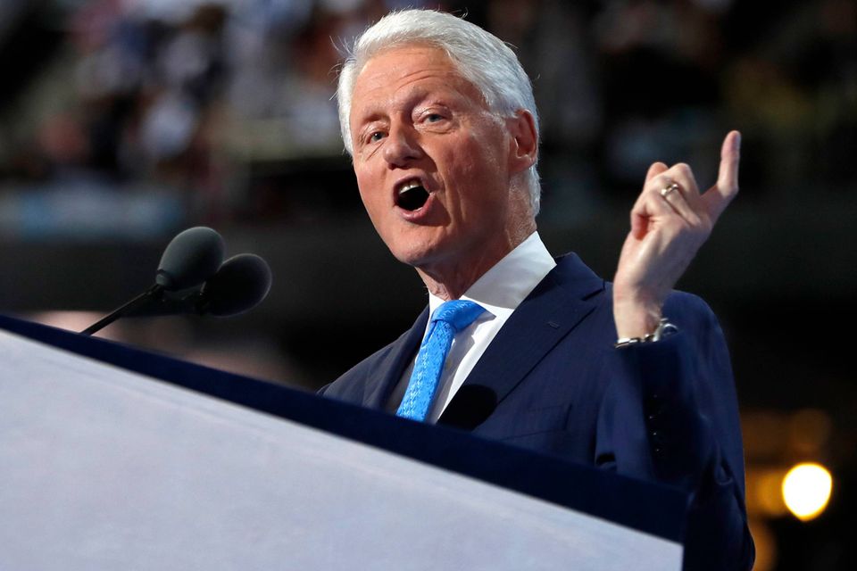 »Hvordan kan alt det her passe med det, vi hørte om Hillary på det republikanske konvent?« spurgte præsidenten fra 1993 til 2001 og svarede selv, at det kan det nok heller ikke.