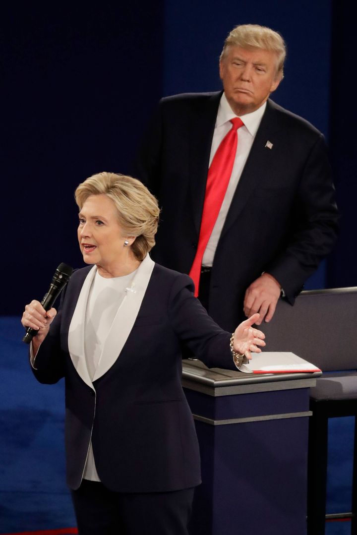 I sketchen fremstilles Hillary Clinton som værende akavet og alt andet end afslappet under debatten, mens Donald Trump blandt andet bliver udstillet som "stalker".