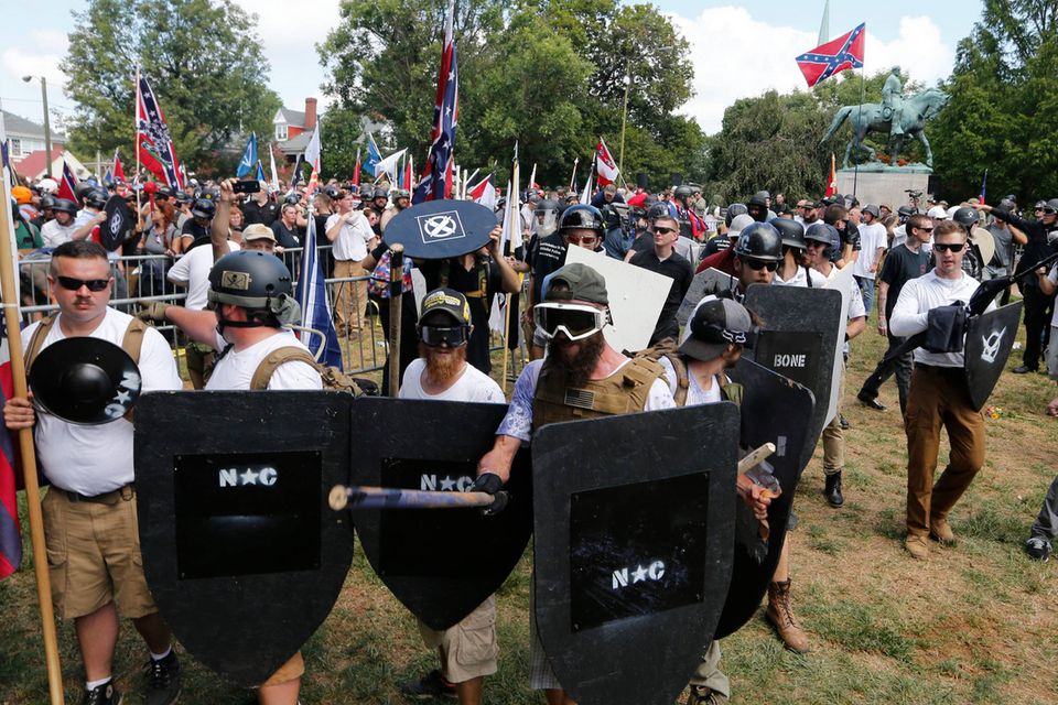 En kvinde blev dræbt og 19 andre blev såret, da en formodet nazisympatisør i sin bil kørte ind i en gruppe demonstranter, som aktionerede mod racisme.