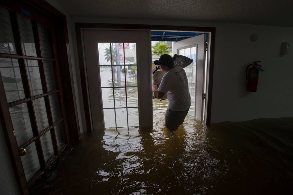 Siden søndag er der dukket talrige billeder op af biler efterladt under vand, sejlende både i gaderne og mennesker, der vandrer rundt i grumset vand til knæene, med kæledyr, børn og ejendele i armene.