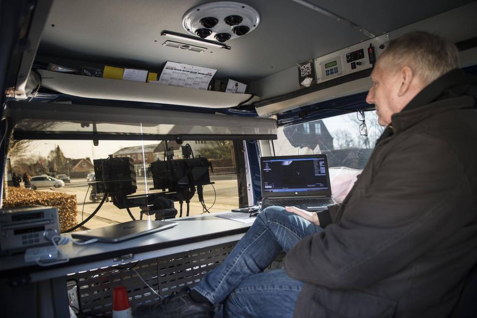 Ikke en eneste gang kommer der et rødt glimt fra kameraet i bagenden af den blå Volkswagen Transporter,…