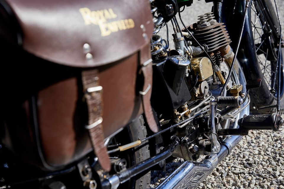 »Wroom«, brøler Royal Enfielden, da Jess Juul Hansen træder motoren i gang på denne motorcykel fra Royal Enfield, der oprindeligt var en engelsk våbenfabrik. Motorcykeldelen blev solgt til Indien i 1956, og her fortsatte man med at lave de originale modeller helt frem til for 10 år siden. Så kom der endelig nye modeller på programmet.