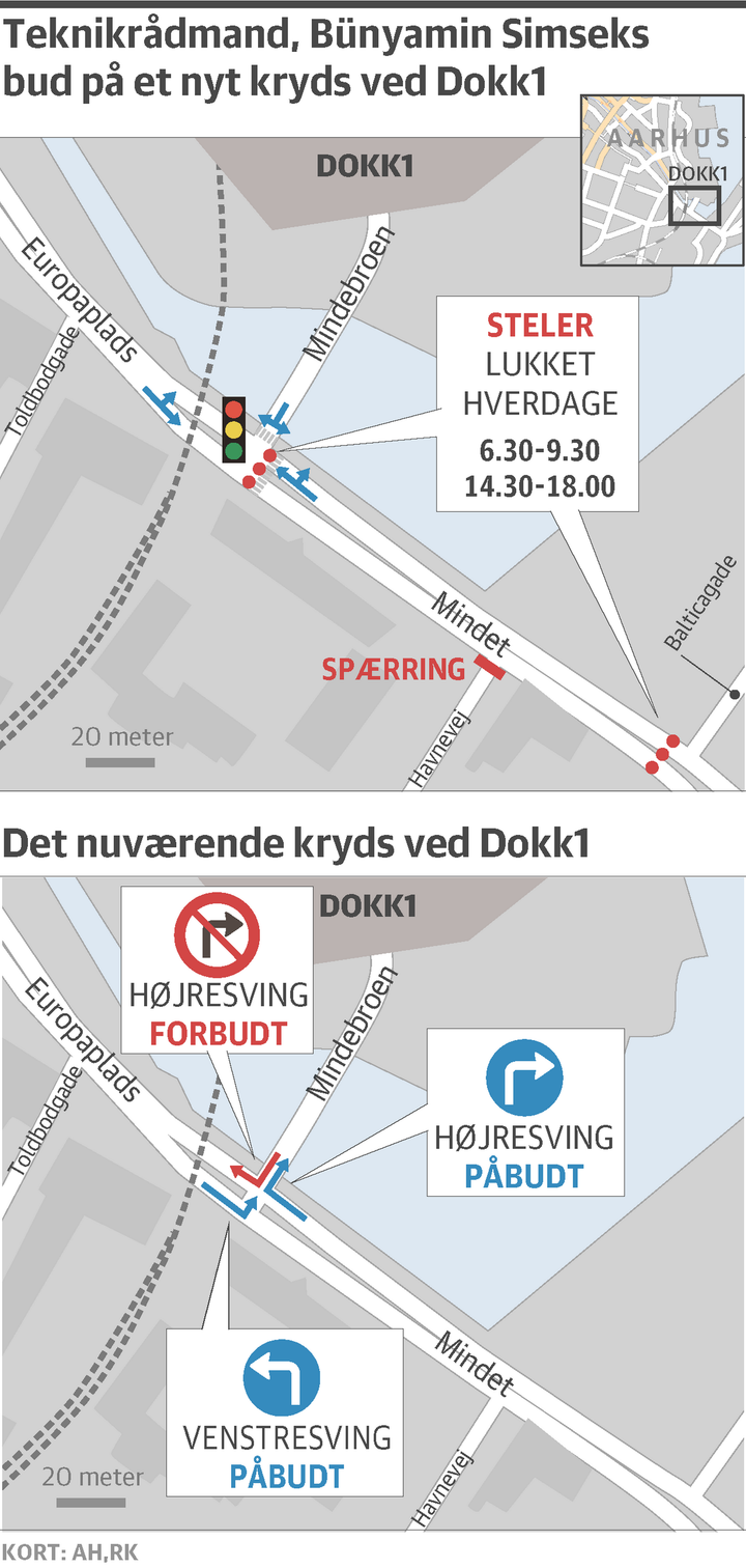 Det vil få en god modtagelse fra et flertal i byrådet, når teknikrådmand Bünyamin Simsek (V) på næste byrådsmøde vil fremlægge sin løsning for kaoskrydset på Mindet ud for Dokk1.