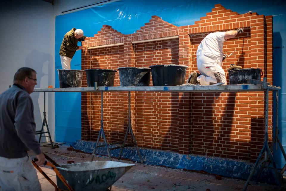 Bent Ehrenreich ligger på knæ foran den mur, der står op mod væggen nærmest som et alter. Han stryger et par gange hen over de røde sten og rejser sig op: »Så er vi færdige.«