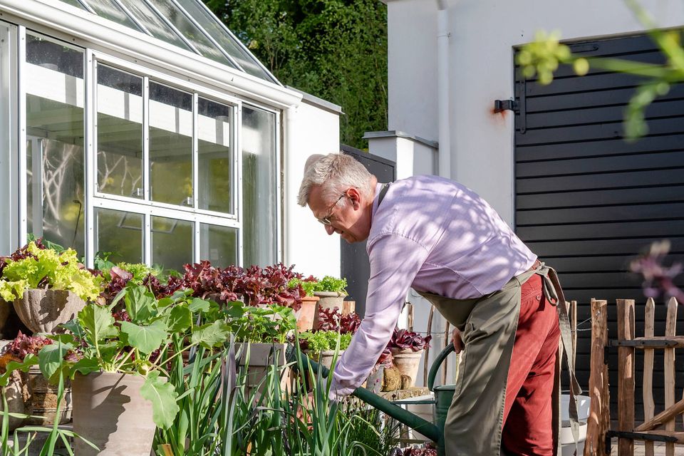 Han siger det uden den mindste fortrydelse i stemmen. Det er prisen for at have så grønne og frodige omgivelser, som han har. Det er ikke bare krukkerne, der skal plejes, men også bedene og drivhusene.
