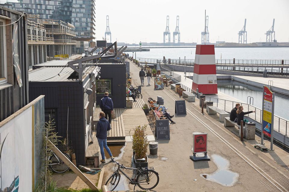 Det er lørdag, og aarhusianerne har fri. Aarhus Ø ligger badet i sol, og havnebadet har tiltrukket et broget klientel på promenaden, der huser alverdens madboder og kaffebarer på stribe. Men snart vil det hele se anderledes ud. For til efteråret rykker de små caféer ud, og så skal der bygges nyt.