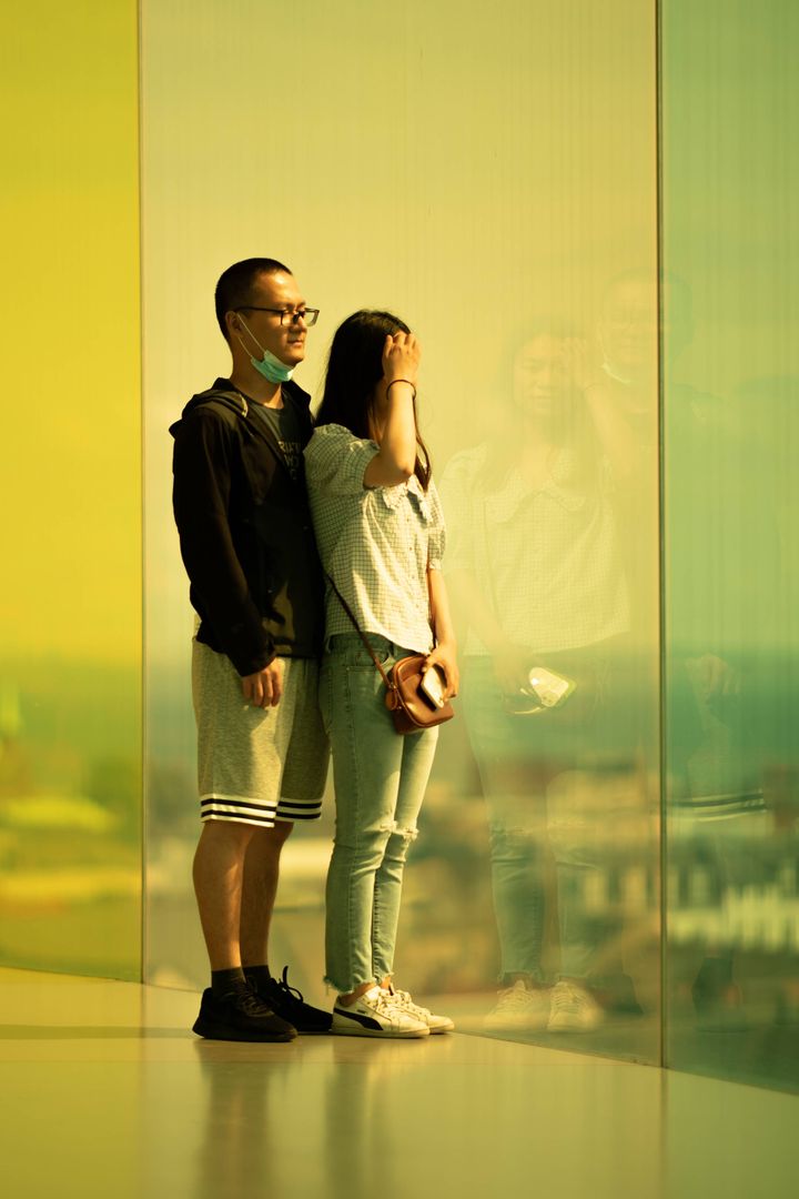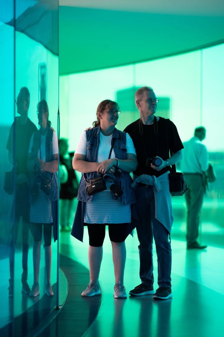 »Ved første øjekast er det meget smukt, men man bliver så svimmel!« sagde Mengting Li helt umiddelbart, da vi mødte parret nedenfor buen. Der sker simpelthen et eller andet, når man tilbringer længere tid i de skiftende farver.
