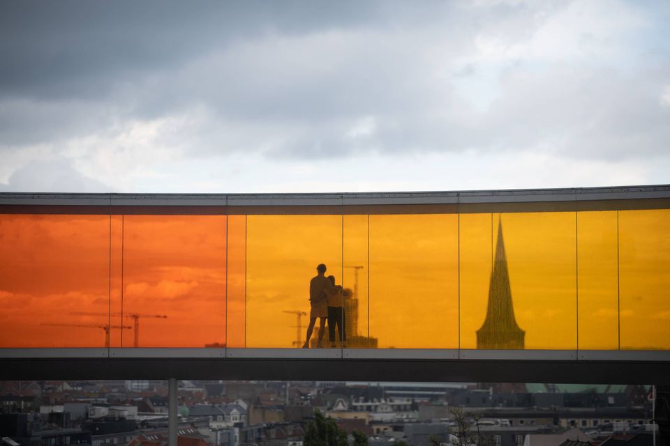Du kan stå næsten hvor som helst i Aarhus midtby og skal ikke bevæge dig mange skridt for at få et glimt af ”regnbuen” svævende på toppen af kunstmuseet Aros, der derfor kan skimtes, hvor der er et åbent kig igennem en gade, eller når et lavt hus giver plads. Samtidig kan du se det meste af byen i alle regnbuens farver fra kunstværket, som i øvrigt pryder turistbrochurer og er svært at komme udenom i både danske og internationale guides til byen.