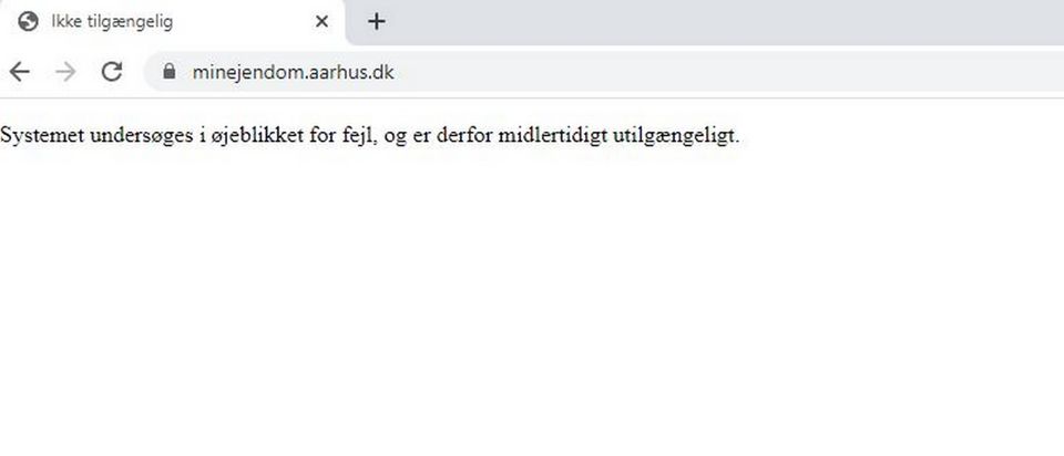Kommunen oplyser, at der ligger ca. 8 mio. dokumenter på minejendom.aarhus.dk, og at man, mens man undersøger årsagen til fejlen, har lukket hjemmesiden.
