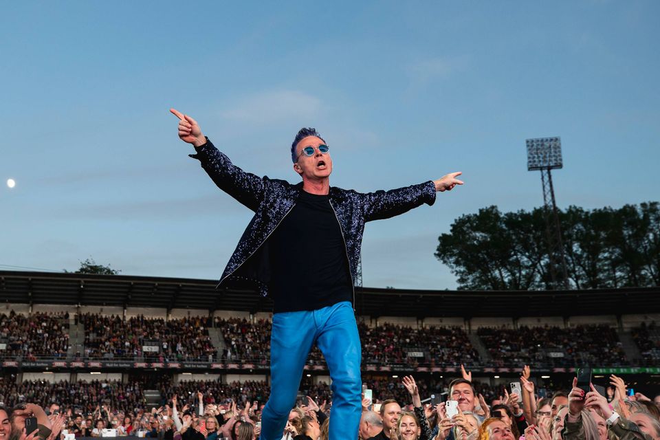 Og det var hans og Aarhus’ aften. For første gang nogensinde stod popkongen bag en stadionkoncert i eget navn, og naturligvis skulle det foregå på hans hjemmebane, Ceres Park, hvor han trofast følger sine hvide helte.