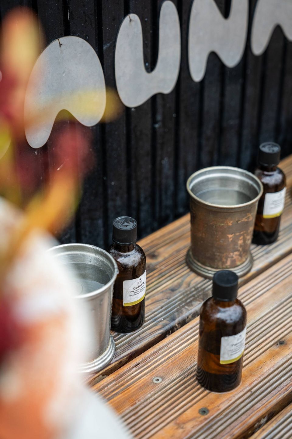 Inde i saunaen er luften tung af citrus.