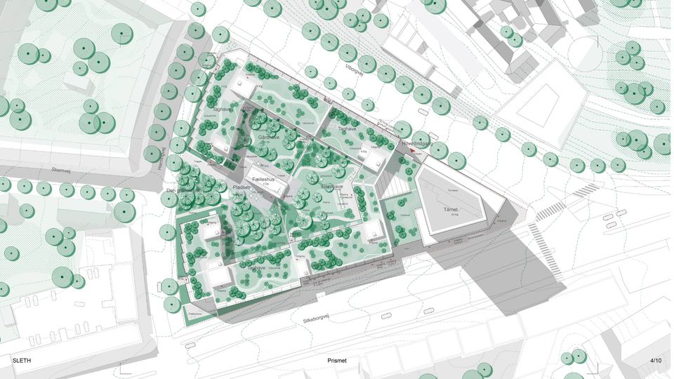 Sleth Arkitekter og Rune Kilden har arbejdet med at fylde grunden med boligblokke helt ud til fortovet. De mener, at der stadig vil være masser af luft og plads i området i kraft af Den Gamle By og Botanisk Have.