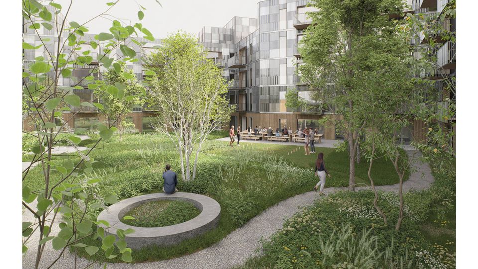 Derfor bliver træningscenteret flyttet fra gade- til gårdsiden i den nye karré. Det kommer til at vende ud mod et offentligt tilgængeligt grønt rum inde i midten af karréen.