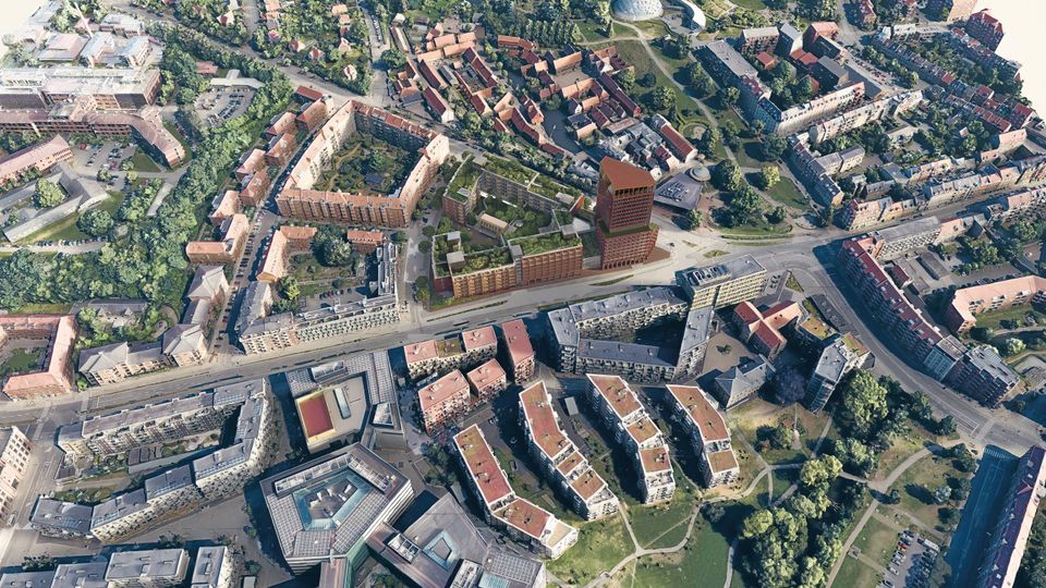 Det er en stor drøm for byudvikleren at få lov til at forvandle det uintegrerede spejlblanke højhus på et vindblæst og spidst hjørne i Cereskrydset til en harmonisk del af en lys karré med boligblokke i flere højder.