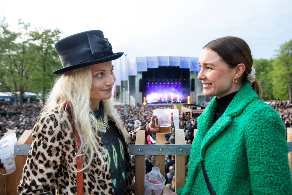 De 5.000 i parken kan ikke se scenen lige så godt som på øen, men de kan få det hele med på en storskærm, hvis uheldet er ude.