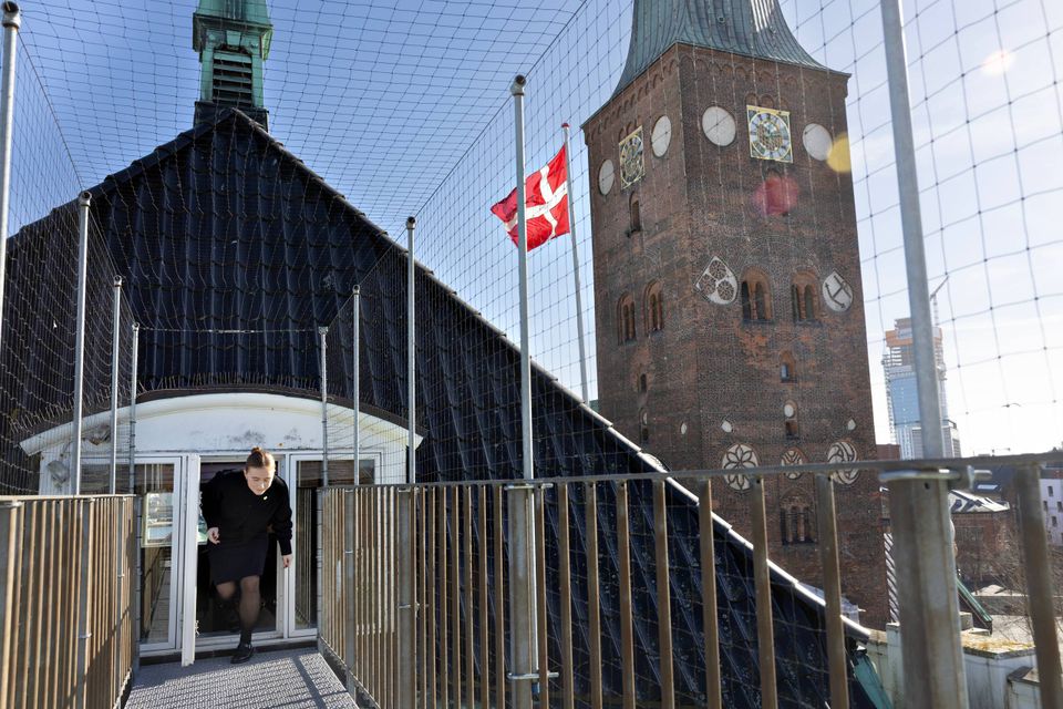 Domkirkens irgrønne tårn rejser sig næsten lige ved siden af. Mange meter nedenfor breder Store Torv sig ud.