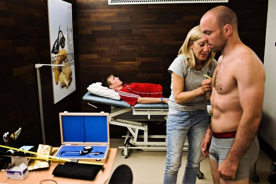 Hjemvendt tager han endnu en gang den fysiske test i Brøndby. Den går ud på at løbe med 17 km/t. på et løbebånd, som gradvist løftes, således at det går mere og mere opad. Man skal løbe indtil man segner.