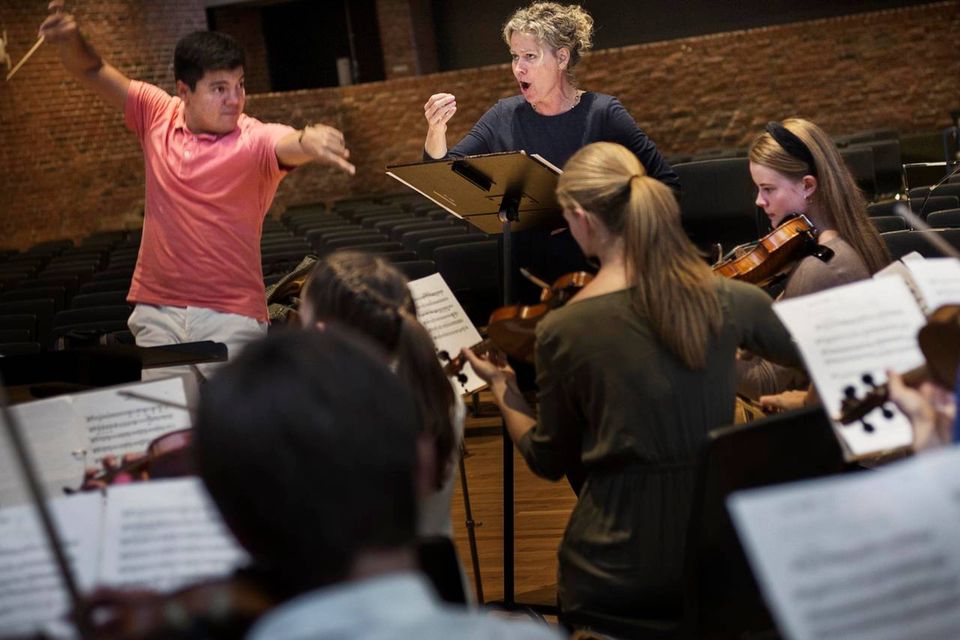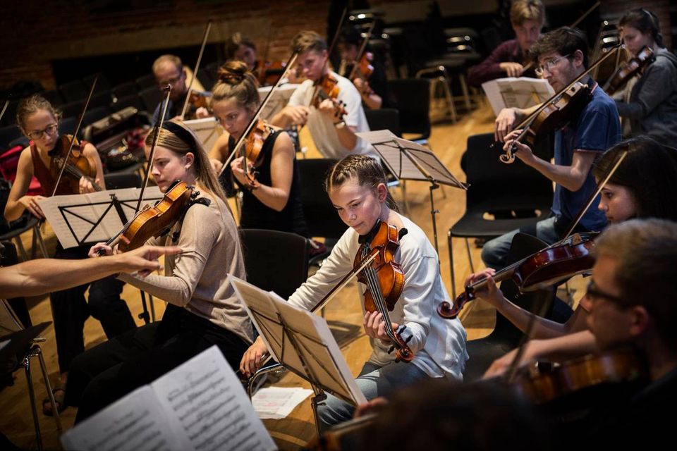 Englesopran synger med unge orkesterspirer