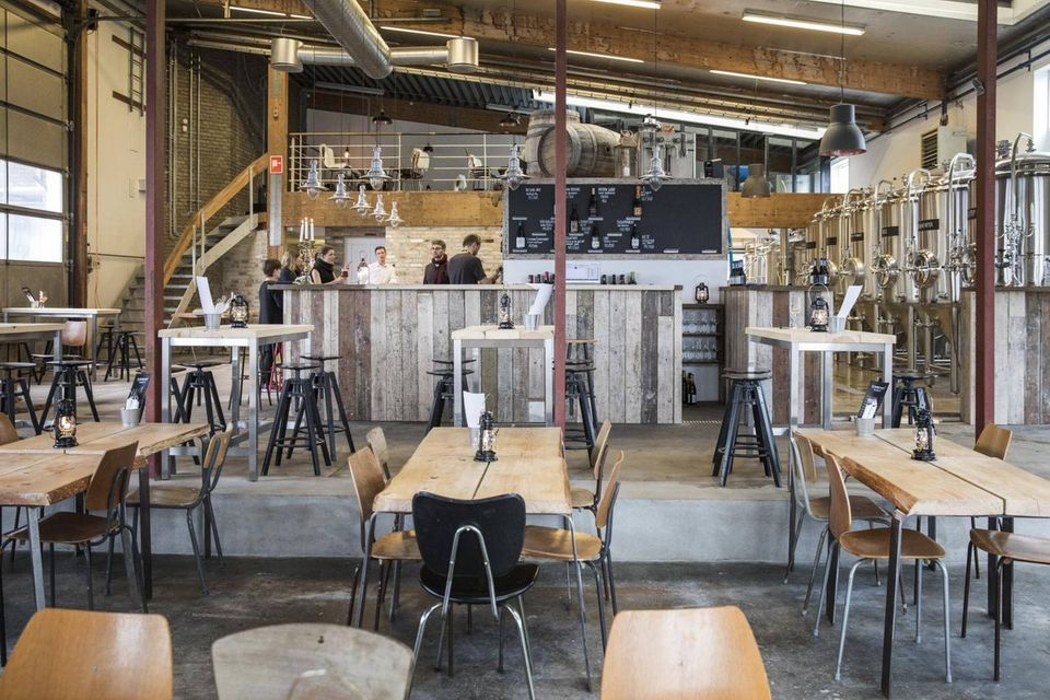 Lokalet er en tidligere industrihal med cementgulve og højt til loftet, møblementet ligner noget, der enten er hjemmelavet eller løftet ud af et loppemarked, baren er bygget af gulvplanker fra det nedrevne Pakhus…