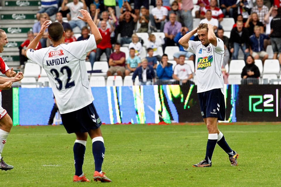 Vejle-AGF. Jakob Poulsen brænder straffespark i overtiden. . Arkivfoto: Ole Lind/Ritzau Scanpix