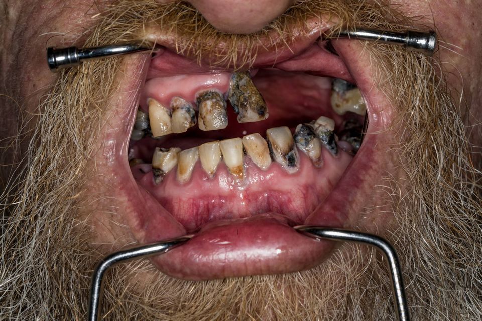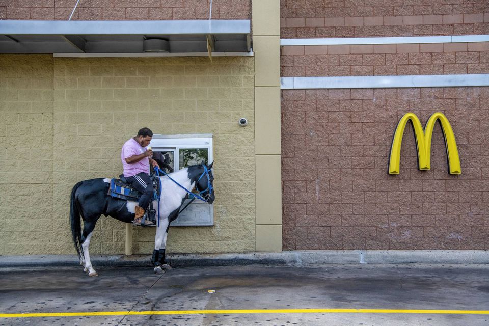Et elefantøje, pilrådne tænder og drive thru på McDonalds til hest