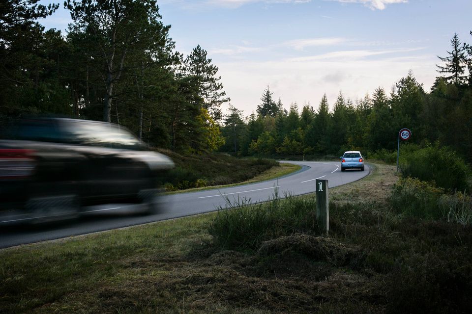 Efter at have cyklet omkring 60 kilometer svinger de på vej tilbage til København ind på den smalle og bugtede Høveltevej…