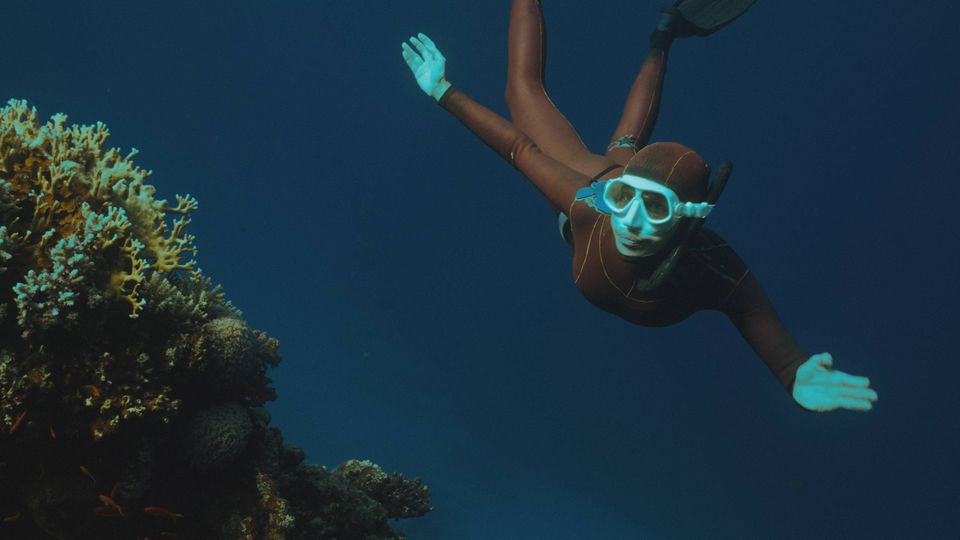 Under vandet findes en anden verden. Lydene er dæmpede, og lyset bryder på en anderledes måde end over vandet, fortættet og blødt, og farverne forsvinder hurtigt, jo dybere man dykker. Man kan svæve vægtløs i en himmel af bølger.
