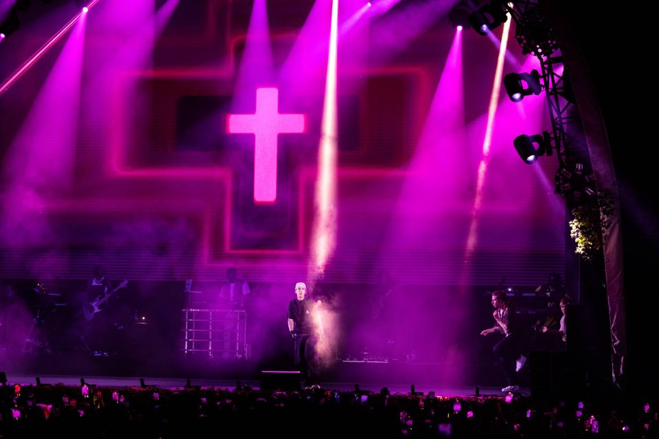 Showet åbnede med en video, hvor Justin Bieber talte – eller skal vi sige prædikede? I storskærmsvideoen gik han bogstaveligt talt på vandet. Som en moderne Jesus tvangsindlagde han de rekordmange festivalgæster til midnatsgudstjeneste.