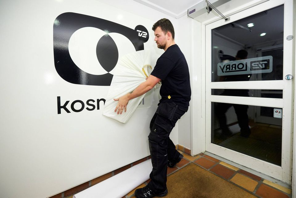 Tirsdag aften blev TV 2 Lorry udskiftet med TV 2 Kosmopol på mediehusets facader og køretøjer. Foto: Jens Astrup/Ritzau Scanpix