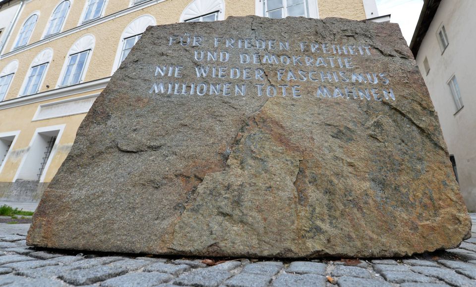 Han var på vej til Wien efter annekteringen af Østrig - og han gjorde i den forbindelse holdt ved sit fødehjem, hvor der i dag er opsat en sten med en tekst, der advarer mod facismen.